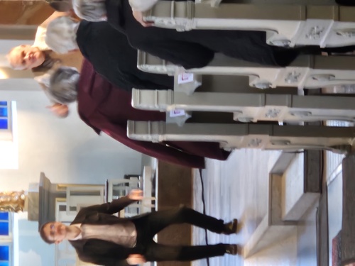 När gästerna anlände till Domkyrkan delades såväl dagens program som föreningens vårprogram ut - 100 exemplar gick åt som smör i solsken. Inte mindre än 128 personer deltog i eventet.