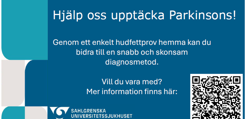 Sahlgrenska universitetssjukhuset genomför en studie för att undersöka om sammansättningen av fett som produceras från huden kan användas som en diagnosmarkör för att identifiera personer med Parkinsons sjukdom och förbättra säkerheten i diagnosen av Parkinsons sjukdom och liknande tillstånd.
